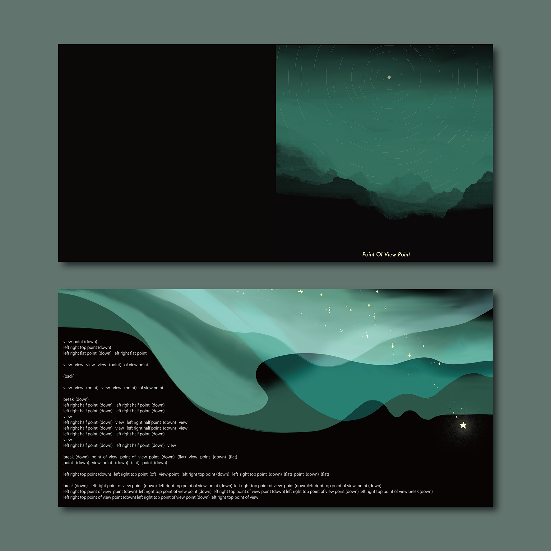 勝手にジャケット WORKS 2020年10月31日 目に見えない音楽を、視覚的に人に伝える。CDジャケットのデザインにおいて、アートワークが持つその効果を魅力的に思いる。 『くちばしにチェリー / EGO-WRAPPIN’』『Point of View Point / Cornelius』『doppel / ヒトリエ』 の3曲を聴いて感じたイメージ、また歌詞から連想した風景をイラストレーションにし、CDジャケットの形で展開している。 庭園の記述 湖のダイヤグラム