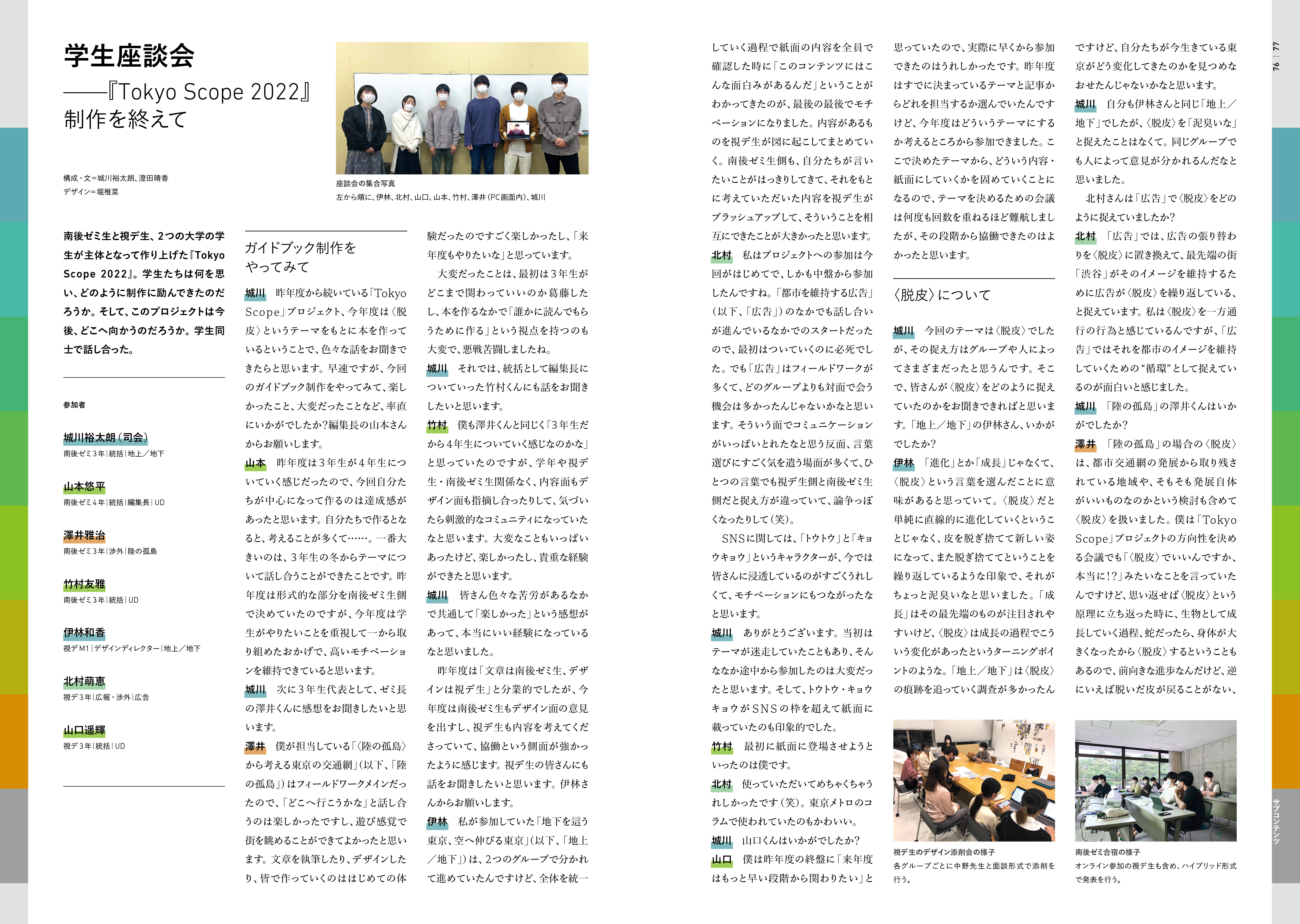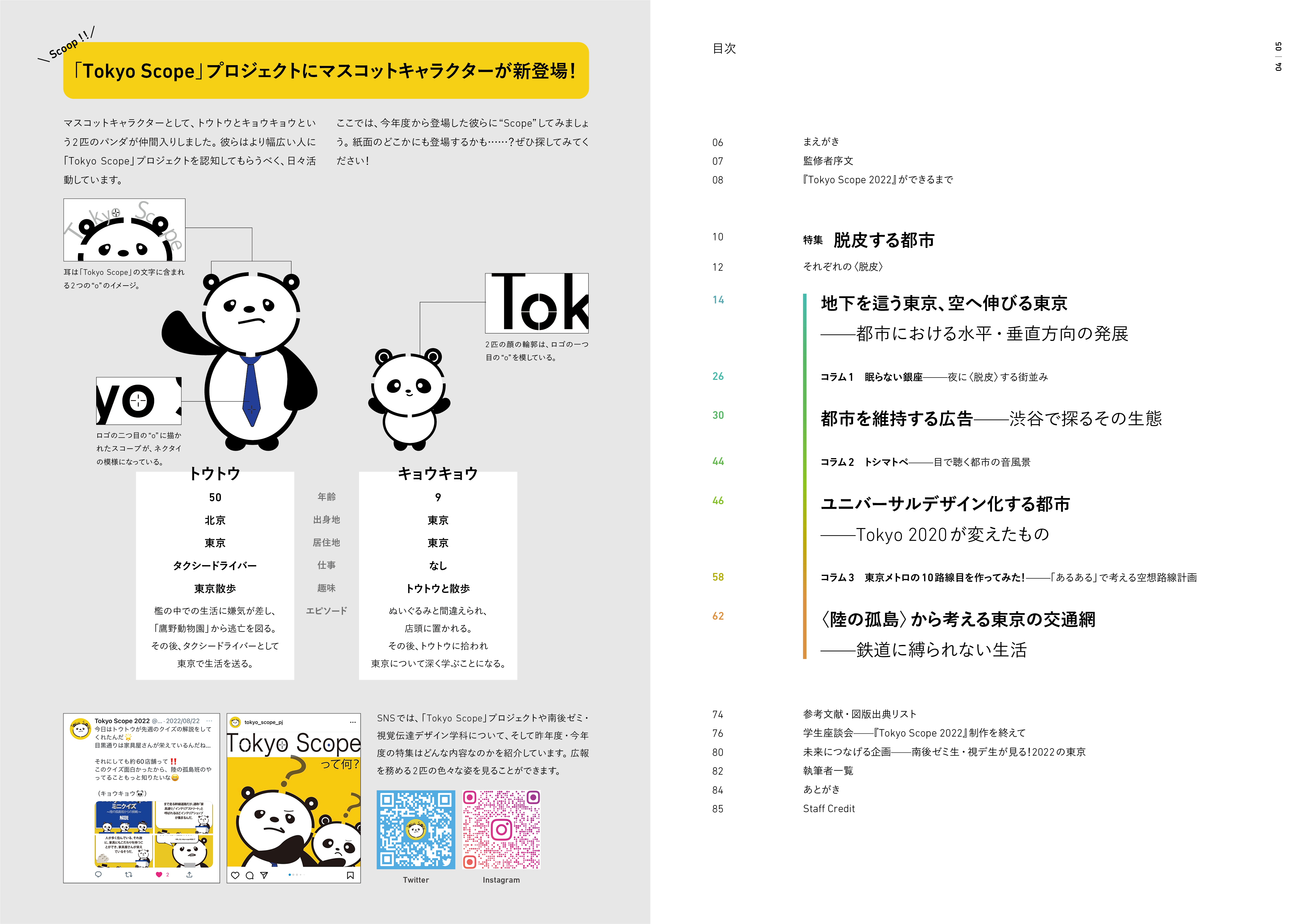 武蔵野美術大学と明治大学の学生が協業で企画、執筆、編集、デザイン、 出版までを一から手掛け、様々な角度から東京の新たな見方を提示する ことを狙いとした「Tokyo Scope」プロジェクト。
